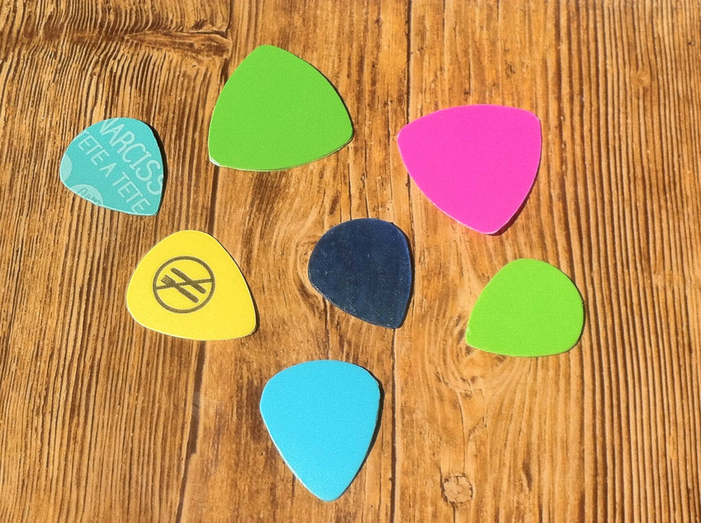 Professionally printed full colour plastic guitar plectrum pick with any image logo and or wording printed.